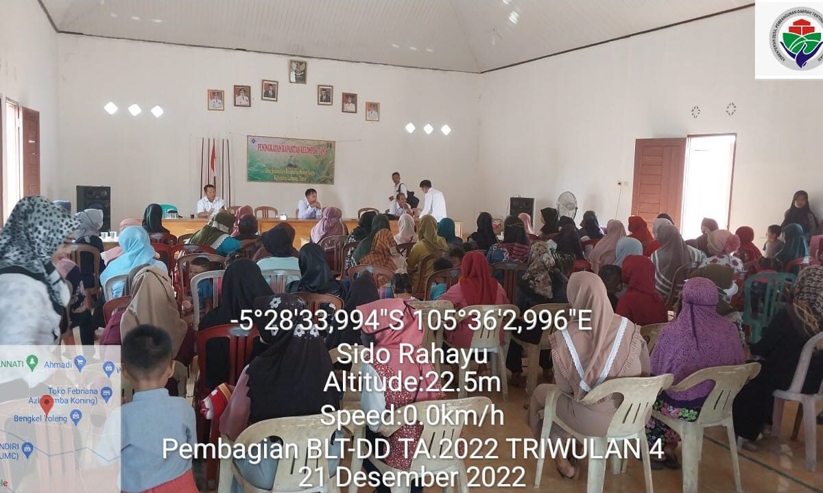 BP Lampung Timur – Pembagian manfaat bantuwan langsung tunai(BLT)dana desa (DD) tahap triwulan (4) anggaran 2022 desa sidorahayu kecamatan waway karya kabupaten lampung timur telah di salurkan.