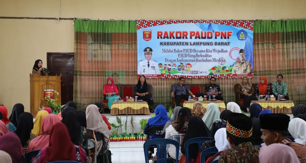 Rakor tersebut mengusung tema ‘melalui Rakor PAUD bersama kita wujudkan PAUD yang berkualitas dengan implementasi kurikulum merdeka’ yang dihadiri Plh. Kepala Dinas Pendidikan dan Kebudayaan Lampung Barat Bulki Basri, Ketua Himpaudi Lampung Barat Nova Kristina, ketua IG TK dan Kepala Sekolah Pendidikan TK dan PAUD se-kabupaten Lampung Barat.