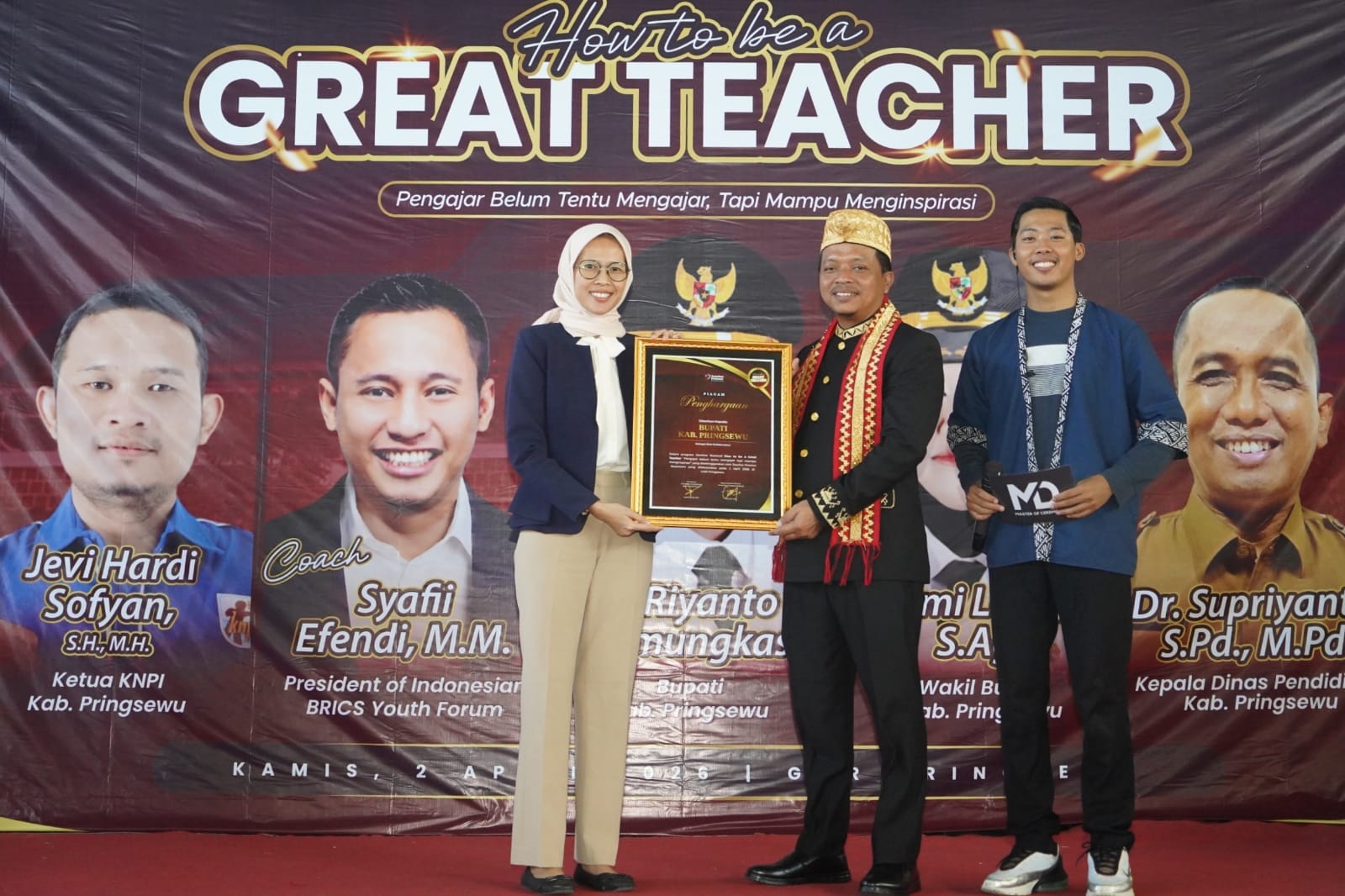 PRINGSEWU (BP) – Bupati Pringsewu H. Riyanto Pamungkas secara resmi membuka Seminar Nasional bertajuk “How To Be A Great Teacher” yang digelar di GOR Pringsewu. Kegiatan ini merupakan hasil kolaborasi antara DPW Teacher Preneur Nusantara Provinsi Lampung dan KNPI Kabupaten Pringsewu.