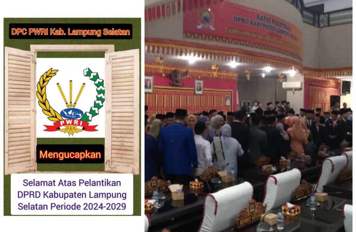 Lampung Selatan (BP) – Ketua DPC Persatua Wartawan Republik Indonesia (PWRI) Kabupaten Lampung Selatan menyampaikan ucapan selamat atas pelantikan dan pengambilan sumpah anggota DPRD Kabupaten Lampung Selatan periode 2024-2029. Acara pelantikan tersebut digelar di Kantor DPRD Kabupaten Lampung Selatan, Senin (19/08/2024).