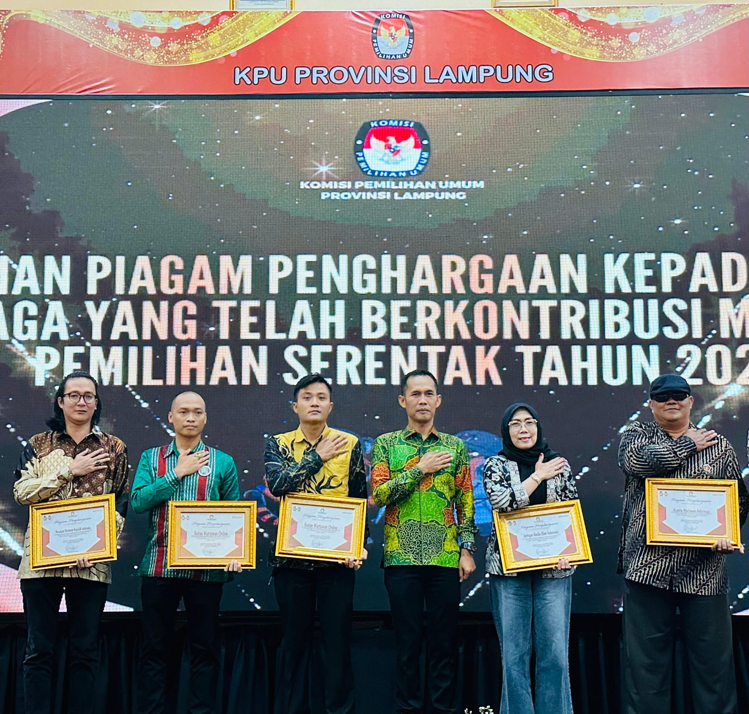 Lampung (BP) – DPD PWRI (Persatuan Wartawan Republik Indonesia) Provinsi Lampung menerima penghargaan dari KPU (Komisi Pemilihan Umum) karena telah berkontribusi menyukseskan pemilihan serentak tahun 2024 lalu.