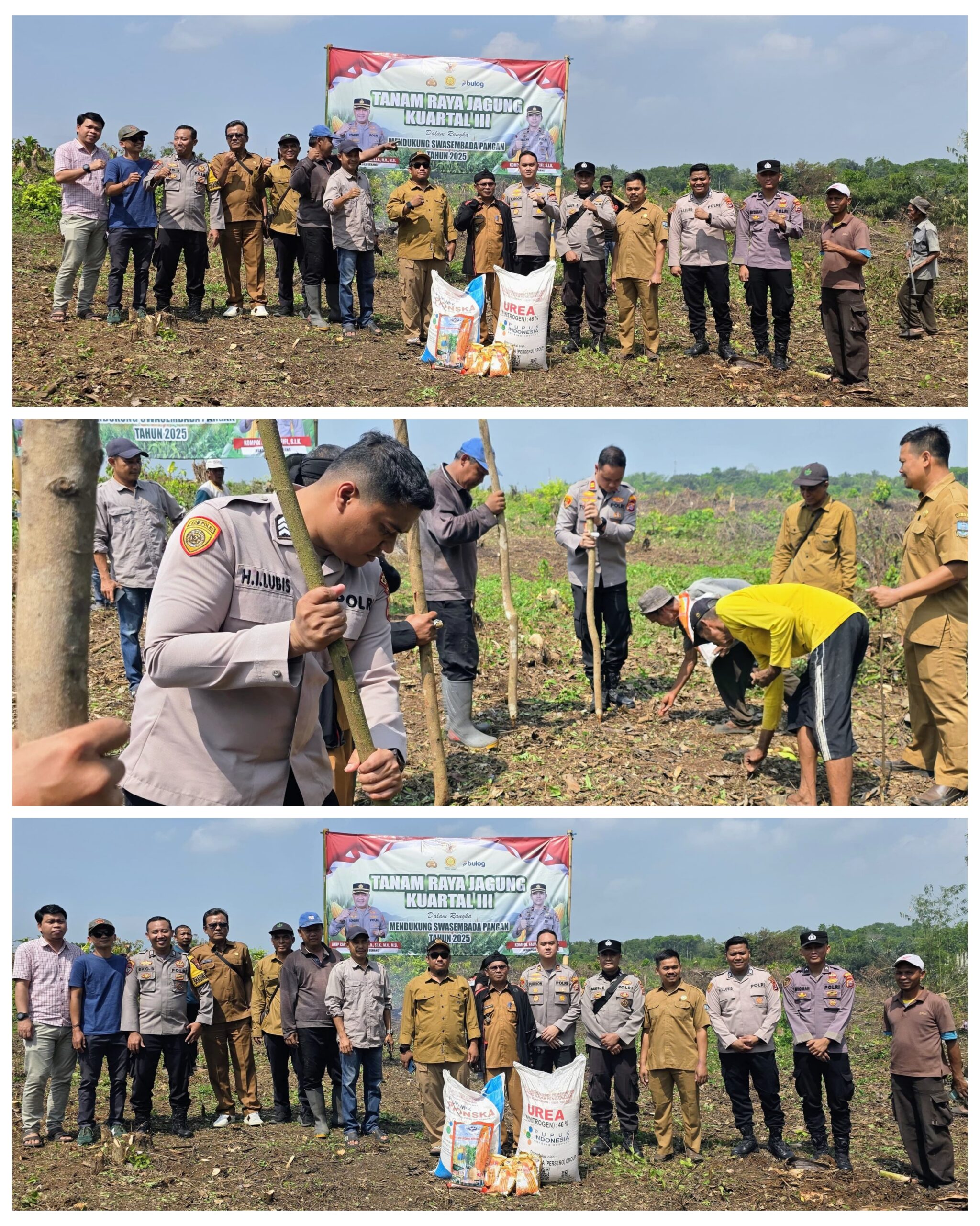 SERANG (BP) – Dalam rangka mendukung program ketahanan pangan nasional, Polsek Petir Polres Serang Polda Banten bersama sejumlah pihak melaksanakan kegiatan penanaman jagung kuartal III di wilayah hukumnya. Kegiatan ini berlangsung pada Selasa, (29/7/2025), sekitar pukul 09.45 WIB di Kampung Sawah, Desa Kubang Jaya, Kecamatan Petir, Kabupaten Serang.
