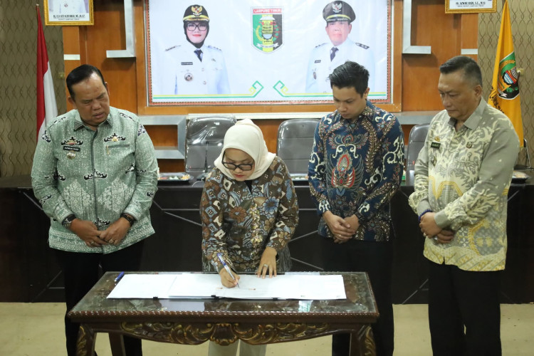 Lampung Timur (BP) – Dalam upaya memperkuat kemandirian ekonomi desa, Bupati Lamtim Ela Siti Nuryamah di dampingi Wabup Lamtim Azwar Hadi dan Asisten Bidang Perekonomian dan Pembangunan KMS Tohir Hanafi, menandatangani Nota Kesepahaman (MoU) dengan Ikatan Notaris Indonesia (INI) di Aula Utama Atas Setdakab Lampung Timur. Jum’at (13/06/2025).
