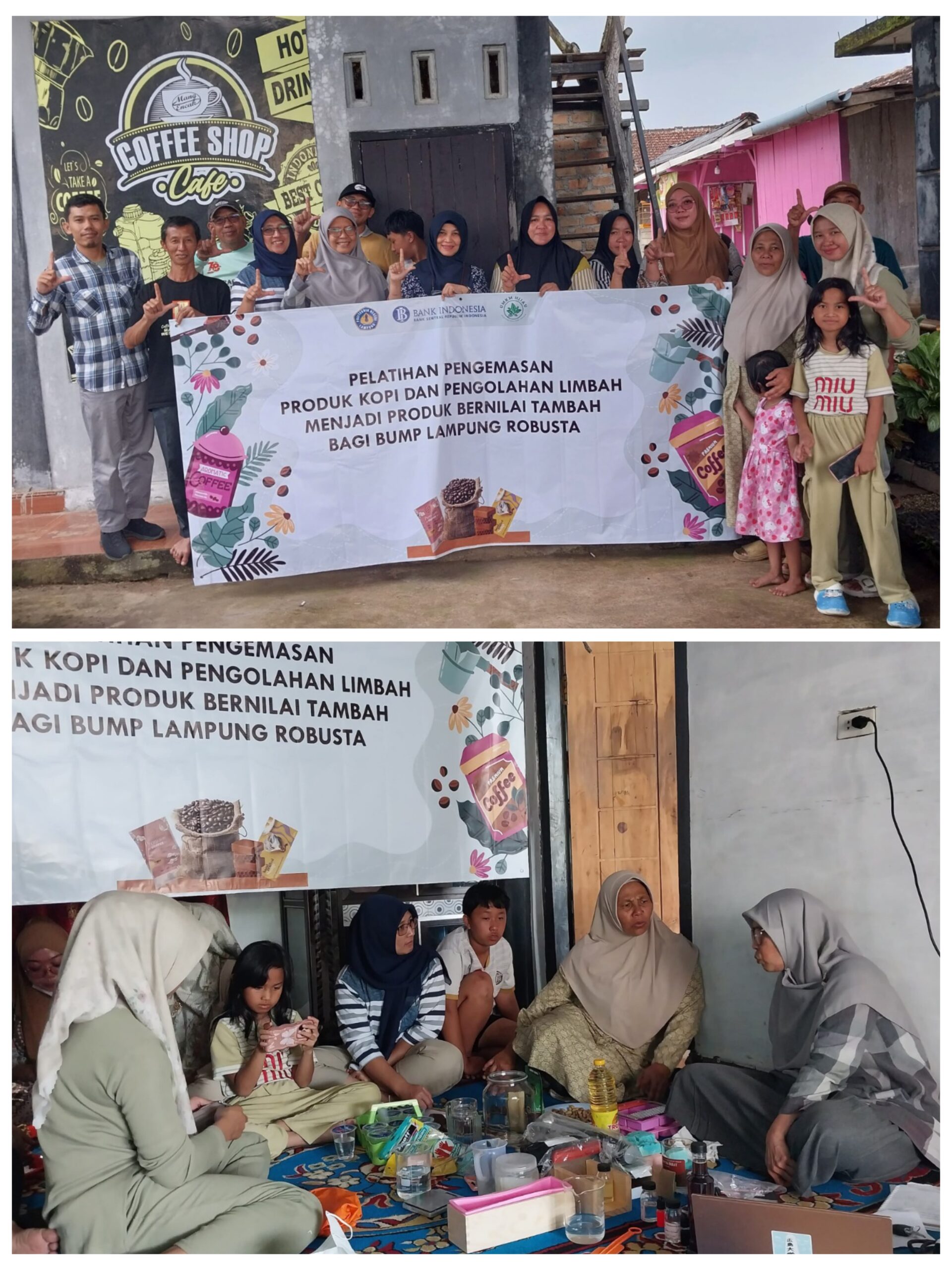Menjawab tantangan tersebut, tim PkM yang terdiri dari Dr. Chandra Utami Wirawati, S.Tp., M.Si., Sri Handayani, S.P., M.E.P., Ir. Winarto, M.P., serta Marbudi, S.P., M.Sc., menyelenggarakan pelatihan hilirisasi kopi pada September 2025. Program ini mendorong diversifikasi produk dari bahan pangan menjadi produk non-pangan bernilai ekonomi lebih tinggi.