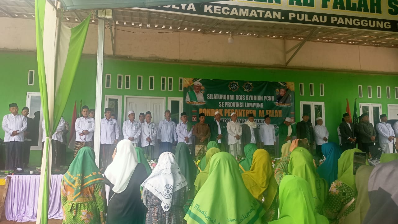 Lampung (BP)_ Jajaran Rais Syuriyah Pengurus Cabang Nahdlatul Ulama (PCNU) se-Provinsi Lampung menggelar pertemuan silaturahmi triwulanan yang dipusatkan di Pondok Pesantren Al Falah, Pekon Sumber Mulya, Kecamatan Pulau Panggung, Kabupaten Tanggamus, Sabtu (10/1/2026). Selain koordinasi organisasi, acara ini menjadi istimewa dengan adanya pengijazahan Istighotsah Al-Hasyimiyah.