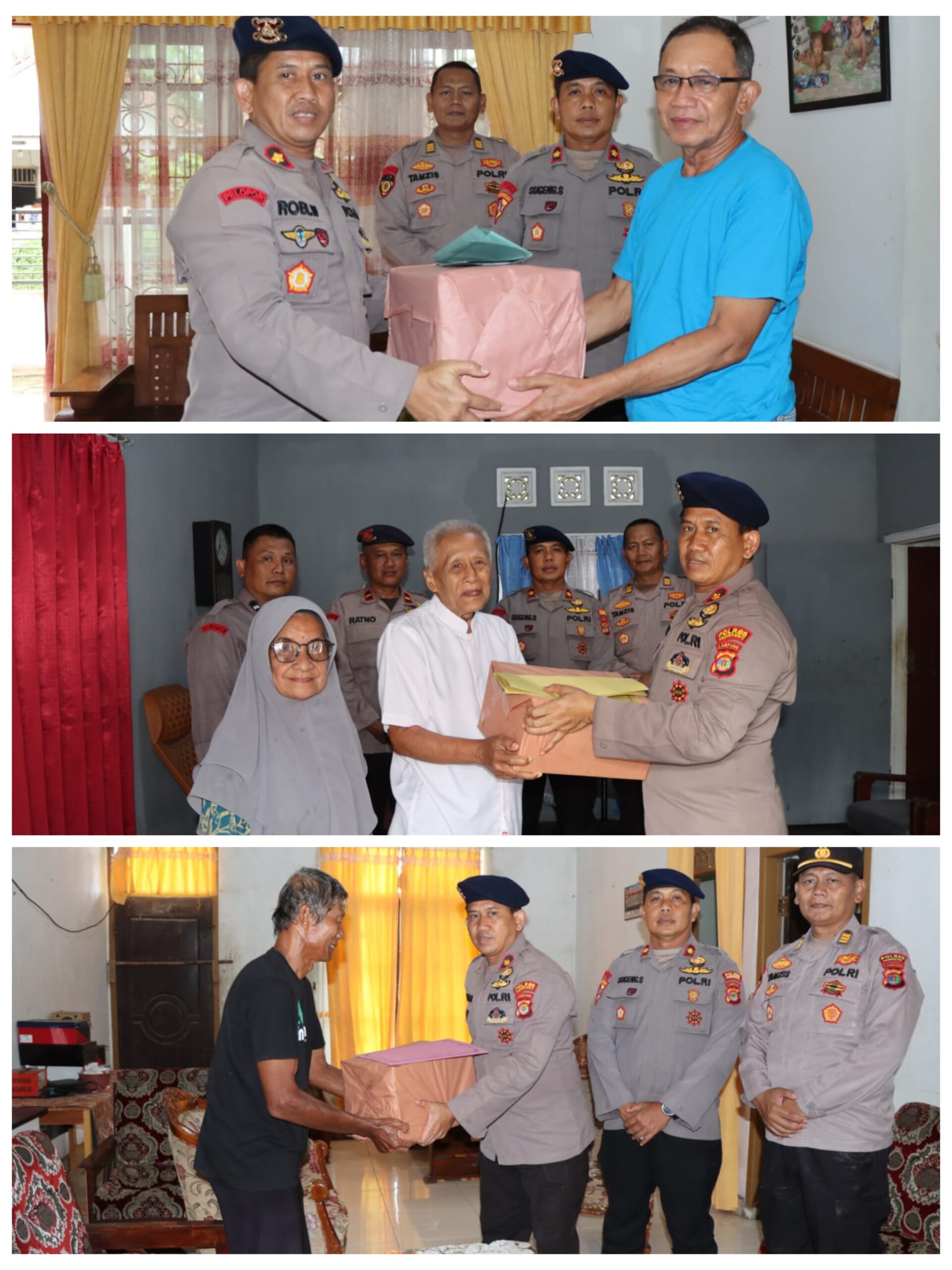 Rombongan pertama mengunjungi kediaman Purn. AKP Bambang Sudirman di Jalan Tani, Kelurahan Pringsewu Barat. Sosok Bambang Sudirman dikenal sebagai salah satu sesepuh Brimob di wilayah Pringsewu yang kemudian bertugas di satuan fungsi tugas umum Polri dan terakhir menjabat sebagai Kanit Binmas Polsek Pringsewu sebelum memasuki masa pensiun pada 2017 silam. Ia juga pernah menjadi pengawal rumah pribadi Jenderal Anton Soedjarwo, mantan Kapolri tahun 1985.