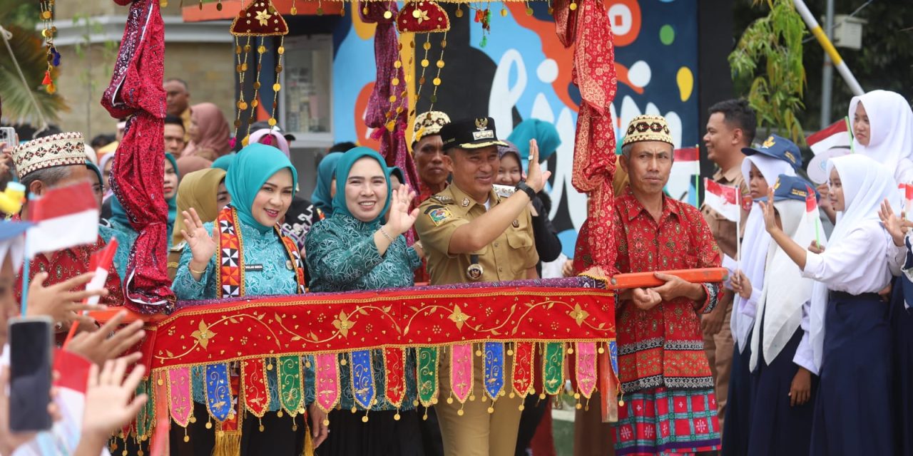 Rombongan kemudian bergerak ke Wisata Pasar Tematik Lumbok Seminung, disambut meriah oleh arak-arakan Sanggar Way Empulau Ulu.