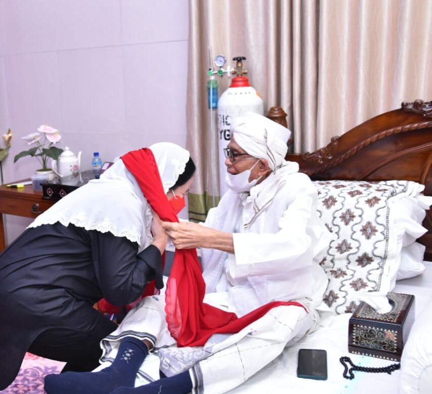 MATARAM (BP) – Ketua DPR RI Puan Maharani mengunjungi Rais Aam dan Mustasyar PBNU di Pulau Lombok Tuan Guru Turmudzi Badaruddin.