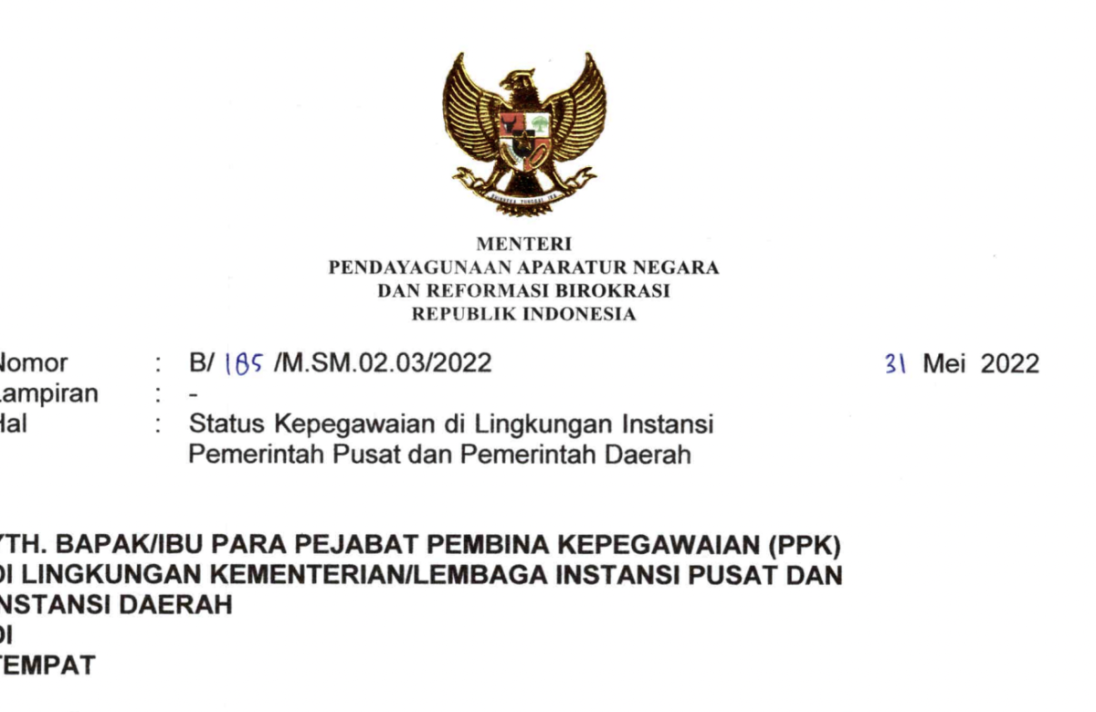 Berkaitan dengan hal-hal tersebut, dalam rangka penataan ASN sesuai ketentuan peraturan perundang-undangan, Menteri PANRB meminta PPK untuk melakukan pemetaan pegawai non-ASN di lingkungan instansi masing-masing.