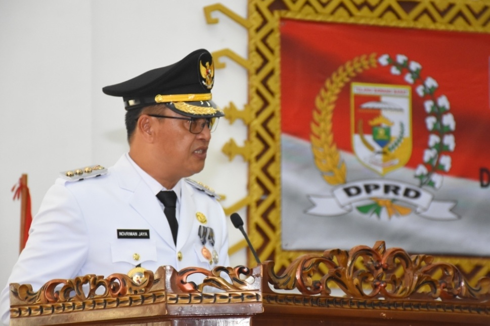 Tubaba (BP) – Bupati Tulangbawang Barat (Tubaba) Ir. Novriwan Jaya, perkenalkan visi kepemimpinannya saat memberikan pidato perdana dalam rapat Paripurna DPRD yang digelar di Ruang Sidang Paripurna DPRD Tubaba. Senin (03/03/2025).