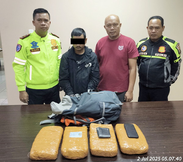 “Ditemukan sebuah tas ransel mencurigakan berisi empat ball dibalut lakban coklat. Setelah diperiksa, diduga kuat berisi ganja,” jelas Indra.