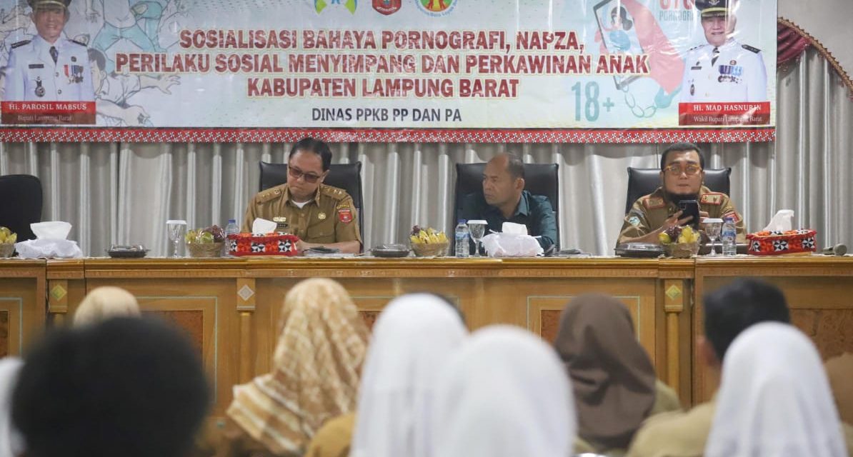 Permintaan tersebut disampaikan Nukman usai membuka sosialisasi Bahaya Pornografi, Nafza, Perilaku Sosial Penyimpangan dan Perkawinan Anak yang di gelar Dinas Pengendalian Penduduk, Keluarga Berencana, Pemberdayaan Perempuan, dan Perlindungan Anak (PPKB PP dan PA) Kabupaten Lampung Barat di Aula Kagungan Setdakab, Selasa 15 Juli 2025.