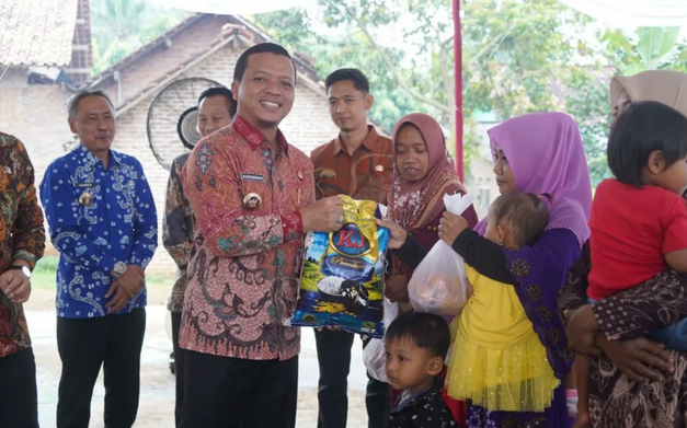 PRINGSEWU (BP) – Memperingati Hari Gizi Nasional ke-65, Pemerintah Kabupaten Pringsewu melaksanakan Gerakan Cegah Stunting. Kegiatan bertema ‘Makanan Bergizi Untuk Keluarga Sehat’ dengan slogan ‘Makan Bergizi Keluarga Sehat’ yang dipusatkan di Pekon Pandansurat, Kecamatan Sukoharjo, Kamis (3/7/2025) ini diisi antara lain penyuluhan gizi seimbang dan tumbuh kembang balita, penyuluhan dan lomba Pemberian Makanan Tambahan (PMT), serta pembagian bantuan Corporate Social Responsibility (CSR) Bank Lampung untuk balita stunting.