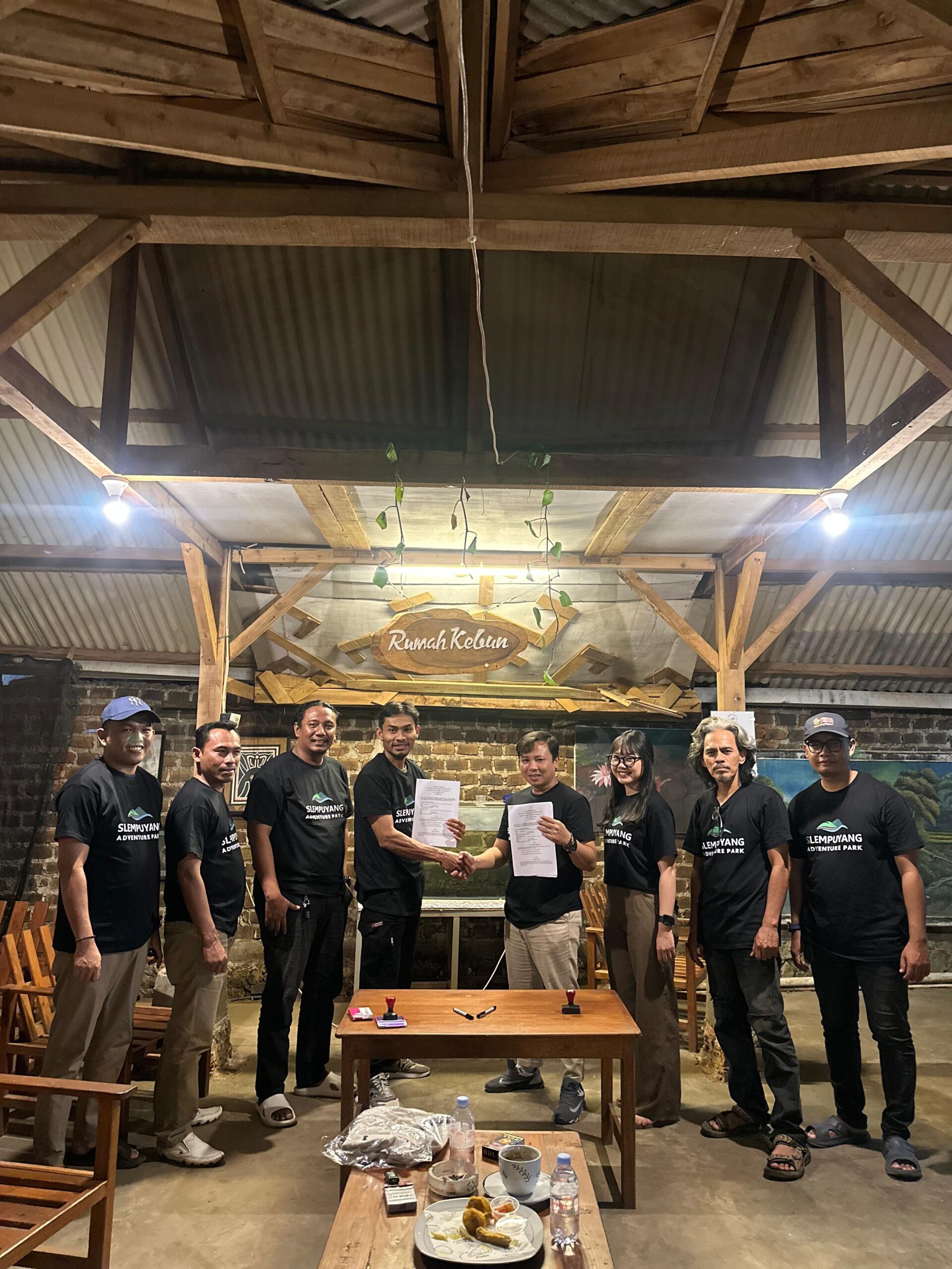Lampung Selatan (BP) – PT Ethos Sinergi Indonesia (Ethos) dan Kelompok Tani Hutan (KTH) Wahana Lancar resmi menandatangani Nota Kesepahaman (MoU) dan Perjanjian Kerja Sama (PKS) terkait pengelolaan Slempuyang Adventure Park, sebuah destinasi wisata alam yang berlokasi di Desa Karya Tunggal, Lampung Selatan.