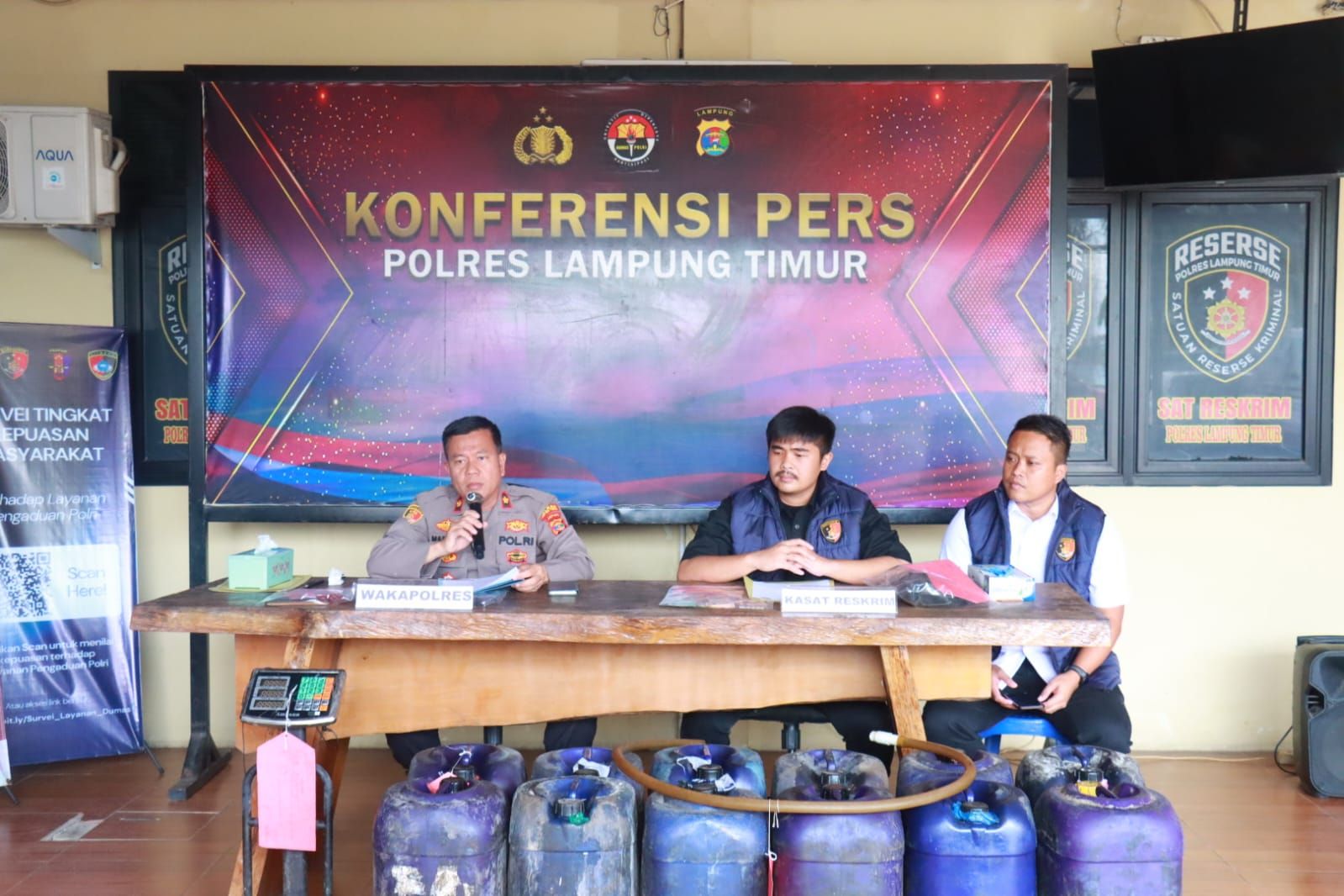 Kapolres Lampung Timur AKBP Heti Patmawati, melalui Wakapolres KOMPOL Maryadi, didampingi Kasat Reskrim AKP Stefanus Boyoh, saat Konferensi Pers, pada Jumat (17/4), menjelaskan bahwa inisial para tersangka penyelewengan BBM Bersubsidi jenis Solar tersebut adalah : SP dan RS warga Kabupaten Lampung Timur, serta AR warga Kabupaten Lampung Selatan.