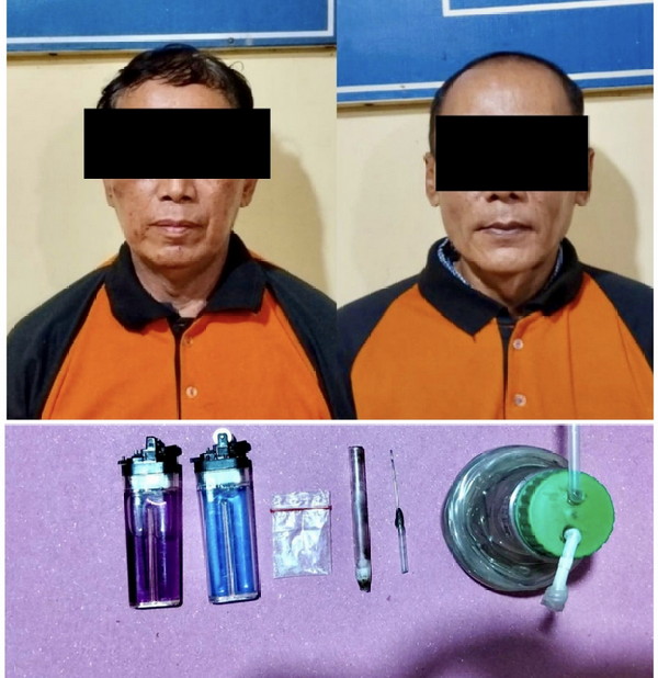 Kedua pelaku yakni RA (61) warga setempat dan SO (51) warga Jakarta Selatan, ditangkap saat mereka sedang asik memakai sabu di ruang tamu.