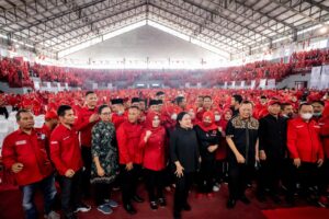 “Puan presiden, Puan presiden,” teriak para kader perempuan PDIP yang serentak mengenakan baju berwarna merah.