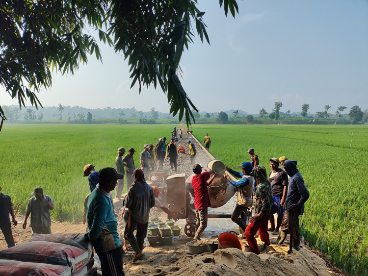 Kegiatan ini dilakukan secara swadaya oleh masyarakat setempat untuk memperlancar akses petani menuju lahan pertanian, terutama saat musim panen dan tanam. Jalan sepanjang sekitar 250 meter yang sebelumnya berlumpur dan sulit dilalui kendaraan kini mulai diperkeras dengan material batu dan tanah timbunan.