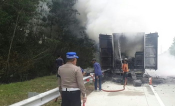 Kapolres Tubaba AKBP Sendi Antoni, S,IK, M,IK  melalui Kasat lantas Akp Fony Salimubun, S.H.,M.H. menjelaskan Bahwa Benar adanya kendaraan tronton Hino Euro empat warna hijau Nopol B 9354 NEU, terbakar di ruas Tol Trans Sumatera KM 213+200 jalur A Terbanggi besar – Kayu Agung, Penanganan cepat kami lakukan untuk memastikan keamanan pengguna jalan lainnya serta menghindari antrean kendaraan,” jelas Kasat Lantas Akp Fony Salimubun,