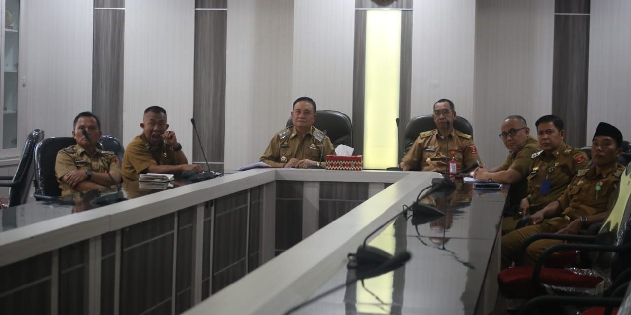 Wabup Lampung Barat Drs. Mad Hasnurin mengikuti rapat virtual di ruang rapat pesagi kantor bupati Lampung didampingi Assisiten Bidang Administrasi Umum Drs. Ismet Inoni, perwakilan Bappeda, perwakilan Dinas Lingkungan Hidup dan perwakilan Dinas PUPR.