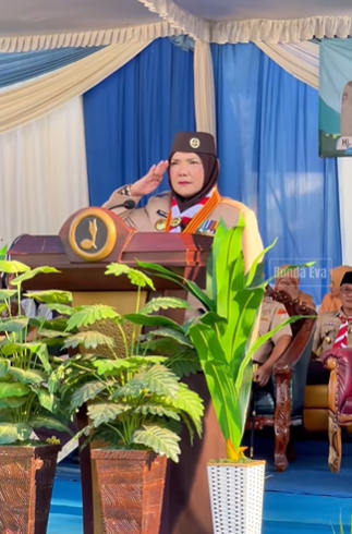 Eva Dwiana mengatakan “melihat semangat dan antusias adik-adik Pramuka yang luar biasa, hati Bunda begitu bahagia dan haru. Sebagai bentuk apresiasi kecil, Bunda pun memberikan hadiah agar mereka semakin semangat belajar, berkarya, dan berprestasi.”