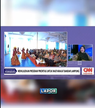Bandar Lampung (BP) – Walikota Bandar Lampung Eva Dwiana menjadi bintang tamu dalam “Mewujudkan Program Prioritas untuk Warga Bandar Lampung” menjadi tema diskusi Walikota Eva Dwiana dalam program Indonesia Forward yang tayang di CNN Indonesia.
