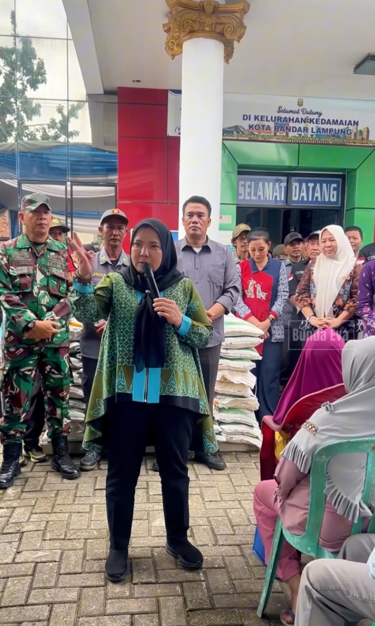 Walikota Bandar Lampung Eva Dwiana menyempatkan untuk menyerahkan langsung bantuan tersebut, untuk memastikan bantuan diterima oleh warga dan tepat sasaran.