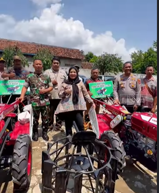 Bandar Lampung (BP ) – Walikota Bandar Lampung Eva Dwiana menyerahkan bantuan hand tracktor serta bibit bawang merah dan cabe di halaman Kantor Kecamatan Labuan Ratu.